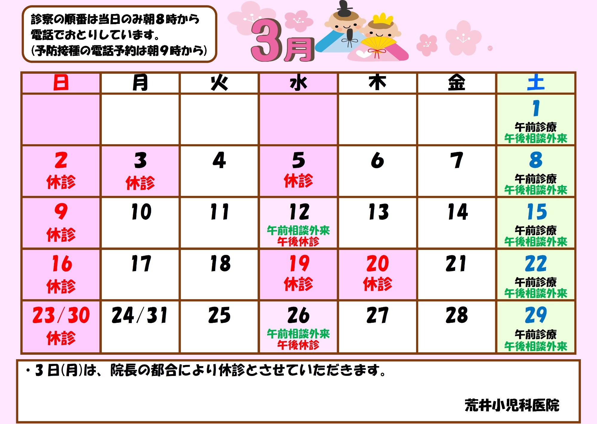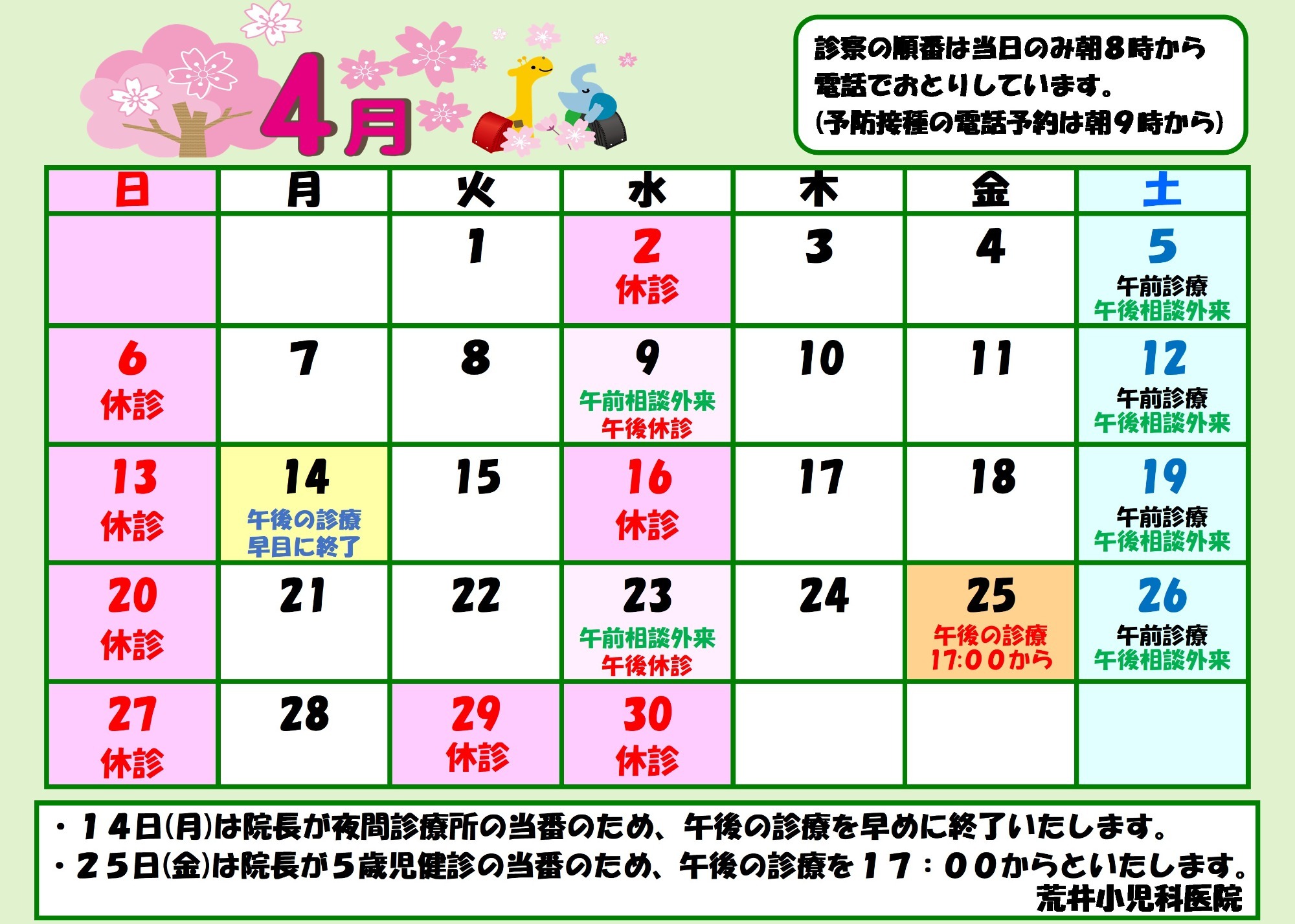 29(月)…院長が夜間診療所の当番のため、午後の受付早めに終了
