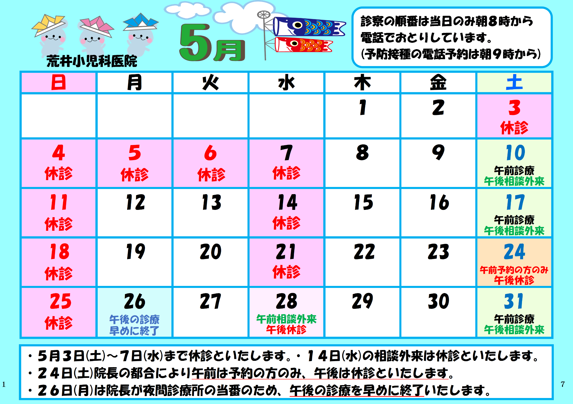 29日(金)…院長が5歳児健診の当番のため午後の診察を17時からといたします