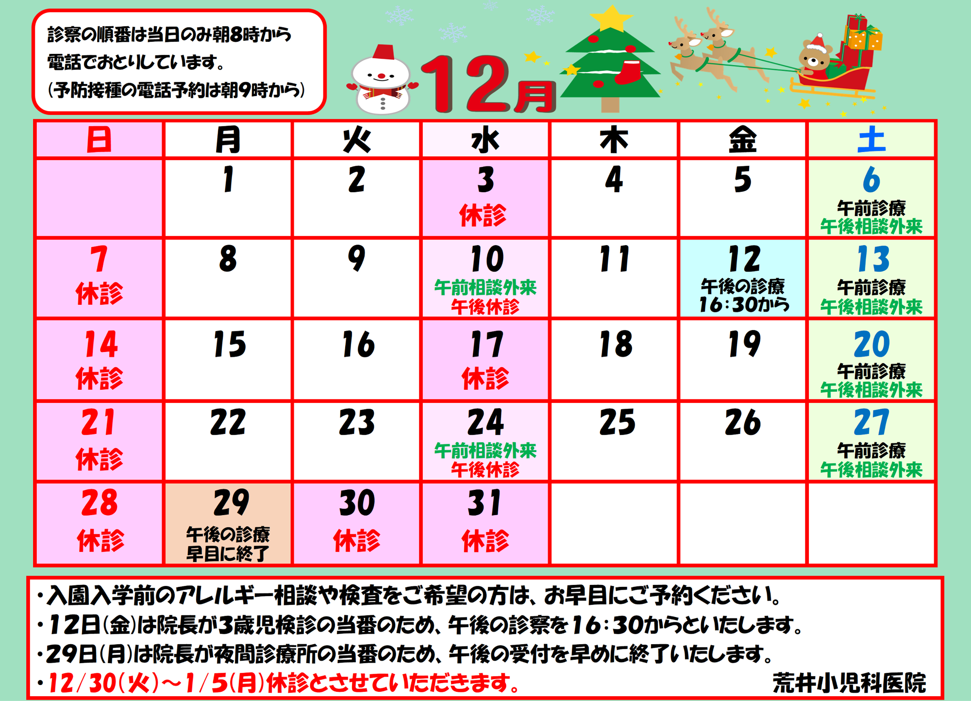12(金)…院長が3歳児検診の当番のため、午後の診察16:30から